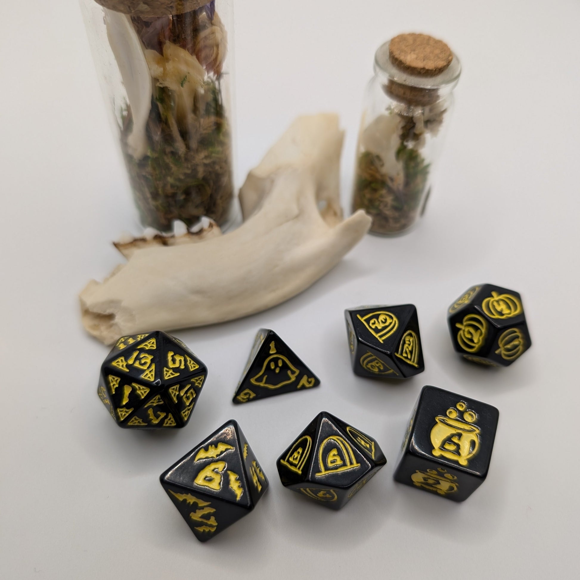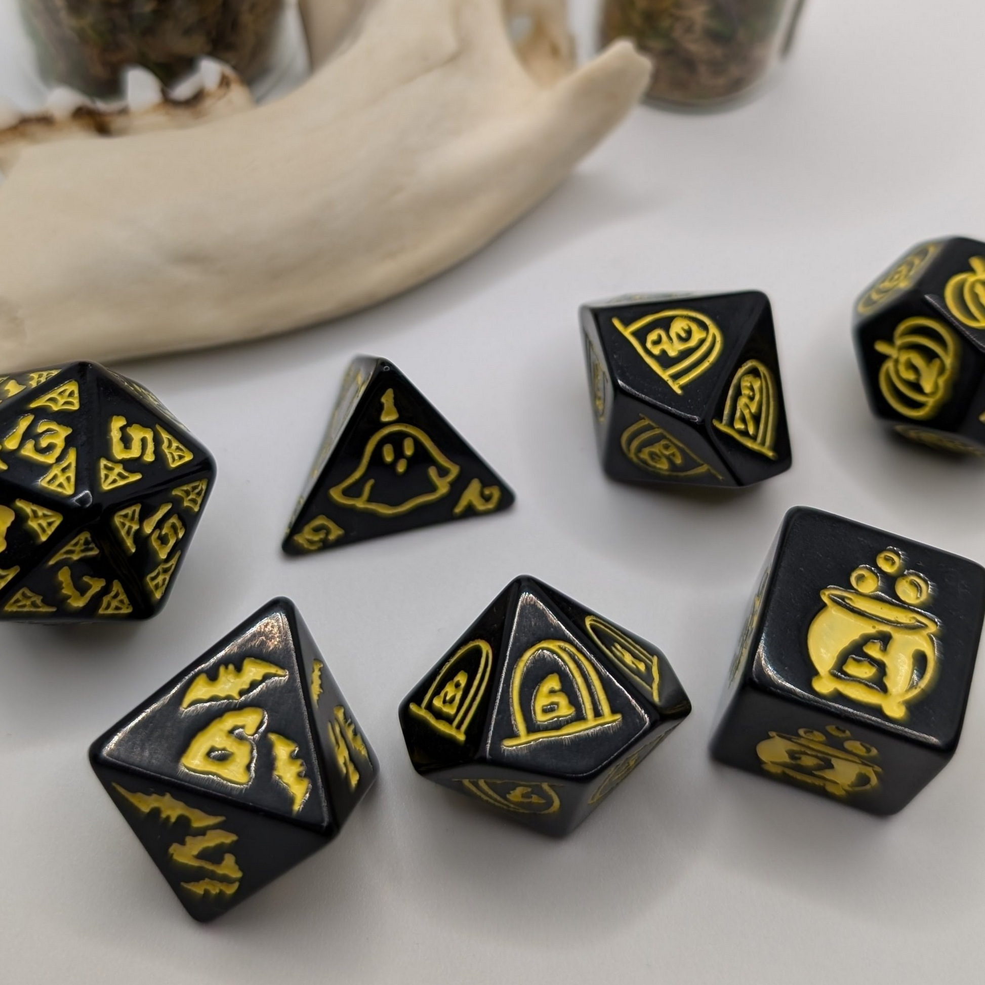 Get into the spooky spirit with our Halloween 24' Release! These dnd dice will add a ghoulishly good touch to your role-playing game. Embrace the frightful fun and roll the dice with these bewitching beauties.